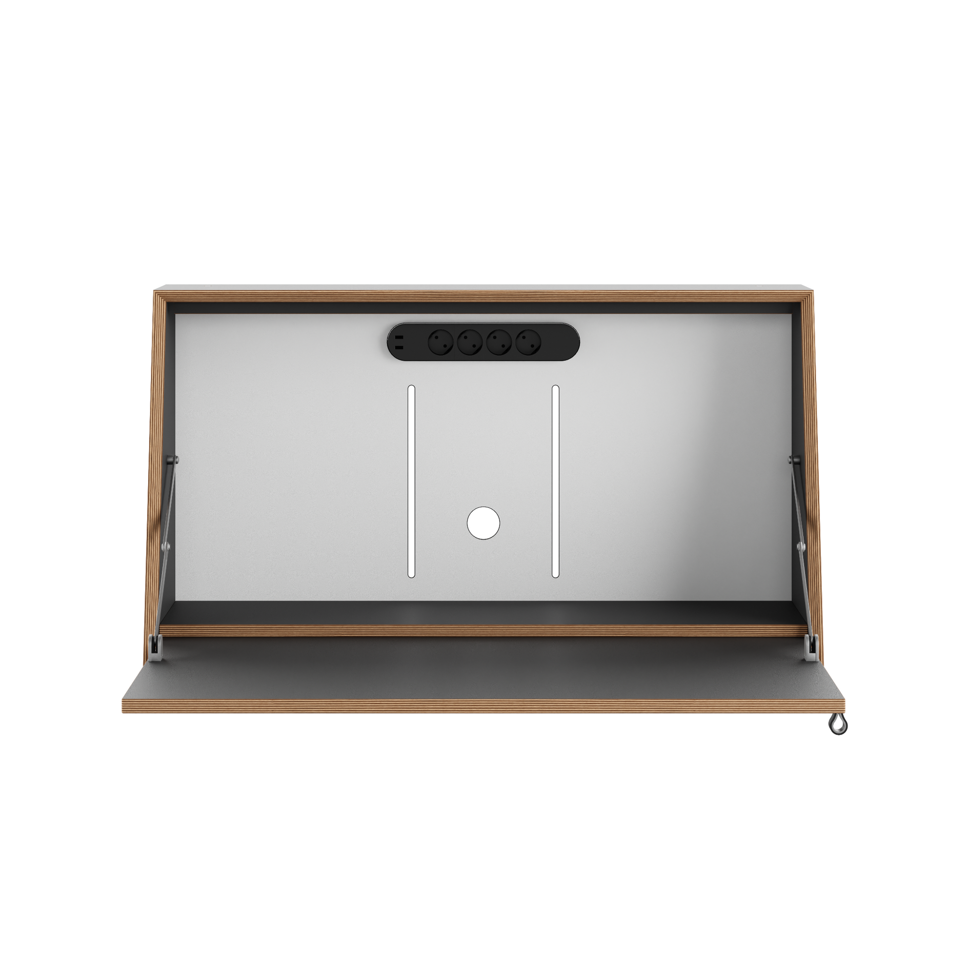 ✔ Integriertes Kabelmanagement – 4 x 230V- & 2 USB-Steckdosen im Korpus für eine saubere Verkabelung
